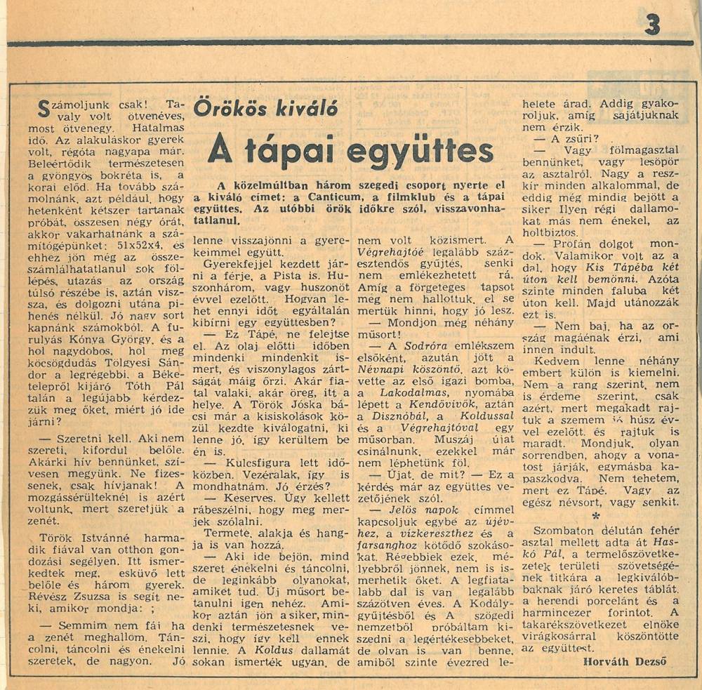 - Délmagyarország cikk a tápai búcsúról, 1987